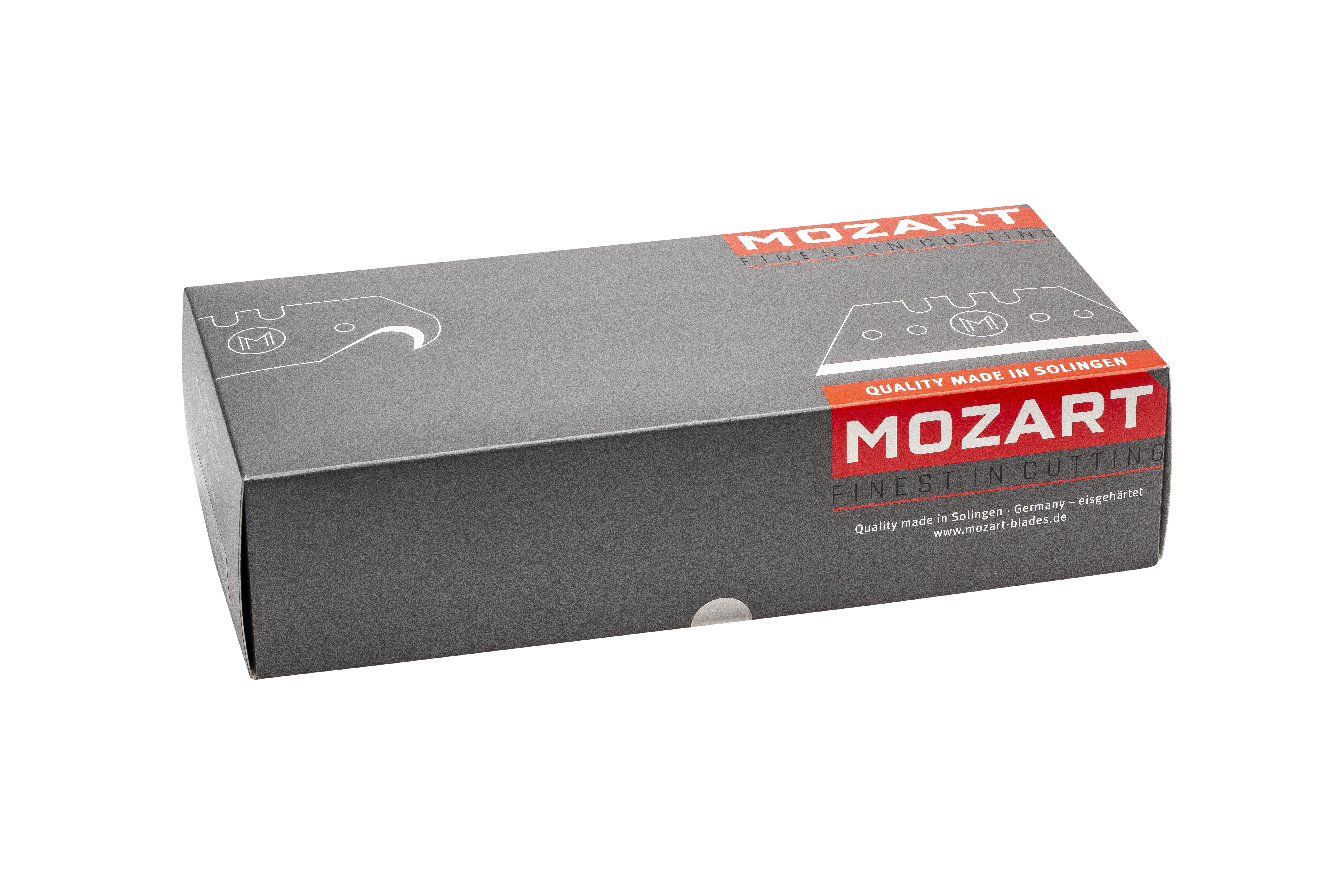 1.000 Trapezklingen 60 mm aus hochlegiertem Kohlenstoffstahl. Für Universalmesser, z.B. Mozart Allegro und Mozart S2. 10 Stück in Sicherheitsdispenser, 10 Dispenser (= 100 Stück) in Hängeschachtel, 10 Schachteln (= 1.000 Stück) in Umkarton. 100% made in Solingen, Germany.